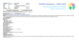 Ci interessava informare il lettore che i dati ufficiali del VAERS confermano in modo tangibile la presenza di un picco di decessi a distanza ravvicinata dalla vaccinazione piuttosto che a distanza di più settimane. Perché ignorare l’evidenza scientifica rappresentata da questo significativo campione? Come suppongono alcuni studi (inclusa la ricerca citata in apertura), i componenti vaccinali potrebbero davvero influire come concausa nella sindrome della morte improvvisa del lattante in soggetti predisposti e questa eventualità andrebbe indagata con dovizia e obiettività.