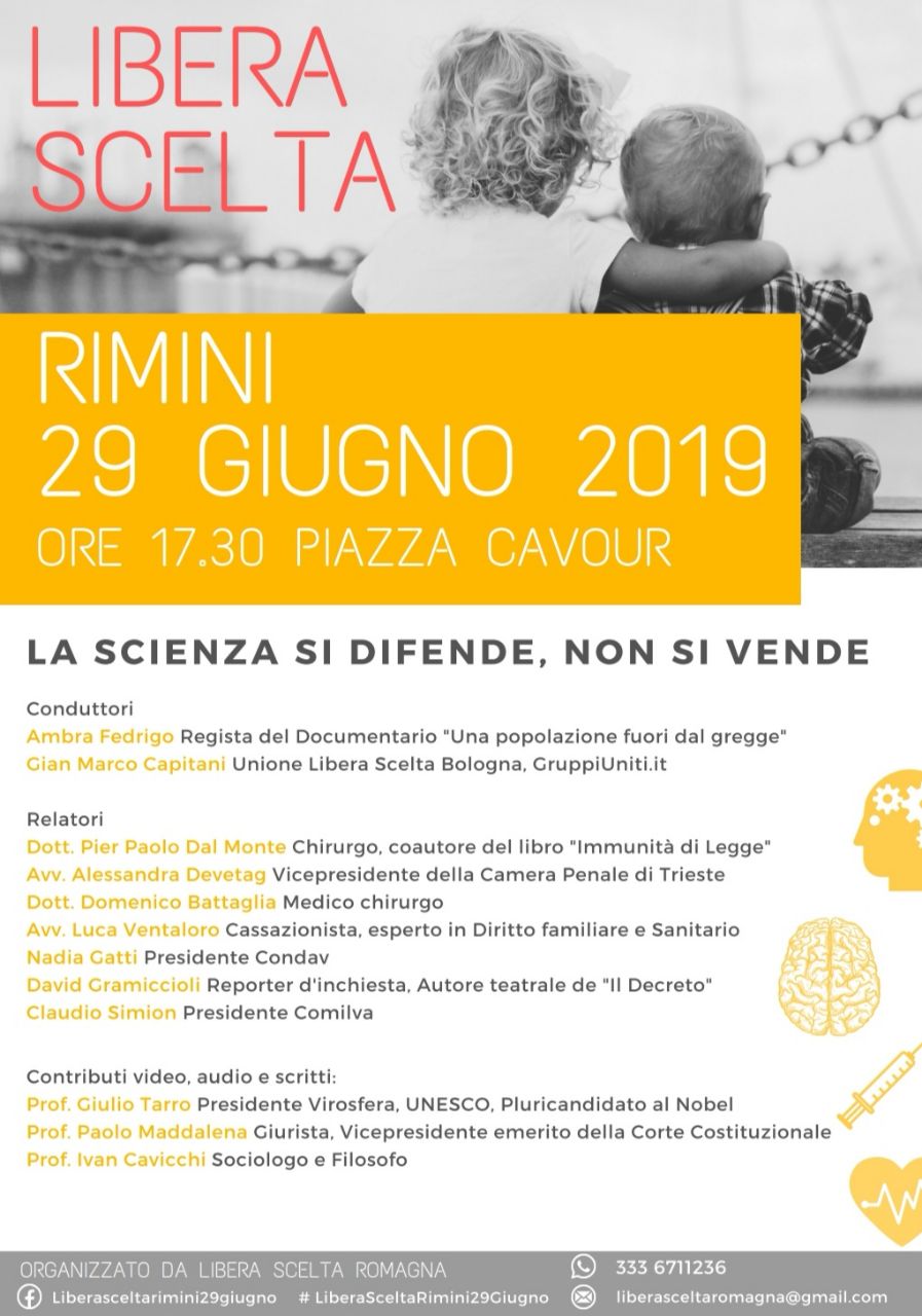 …io sarò a RIMINI, il 29 GIUGNO, PER MANIFESTARE IN DIFESA DEI DIRITTI COSTITUZIONALI, affinché nessun figlio sia allontanato dalla propria famiglia in nome del profitto di aziende e amministrazioni che sempre più voracemente divorano le nostre Libertà di Scelta, a partire dalla salute.